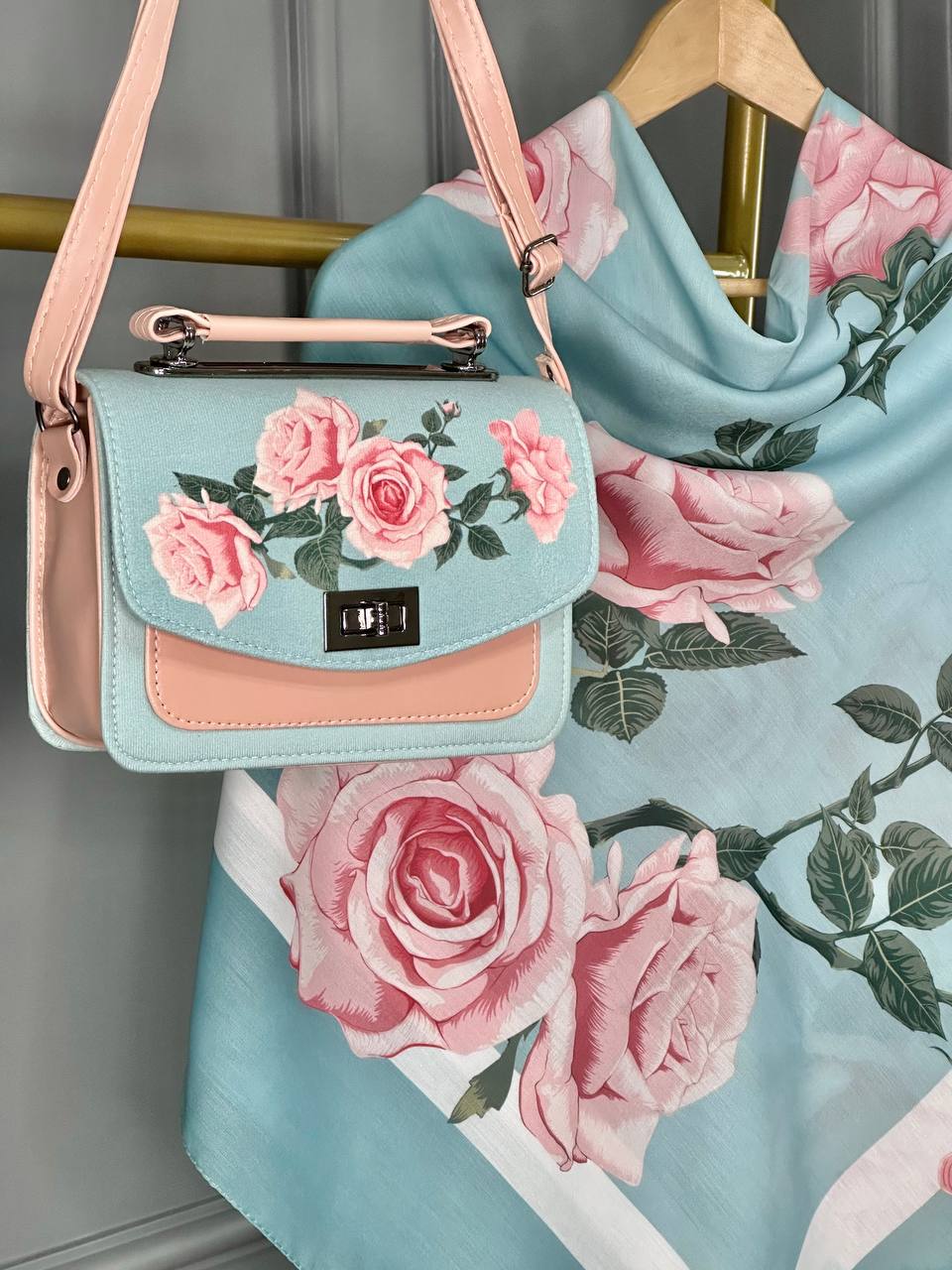 کیفهاش هم دقیقاً با طرح روسری ست شدن؛ شیک، خاص و کاملاً مجلسی 💼💖