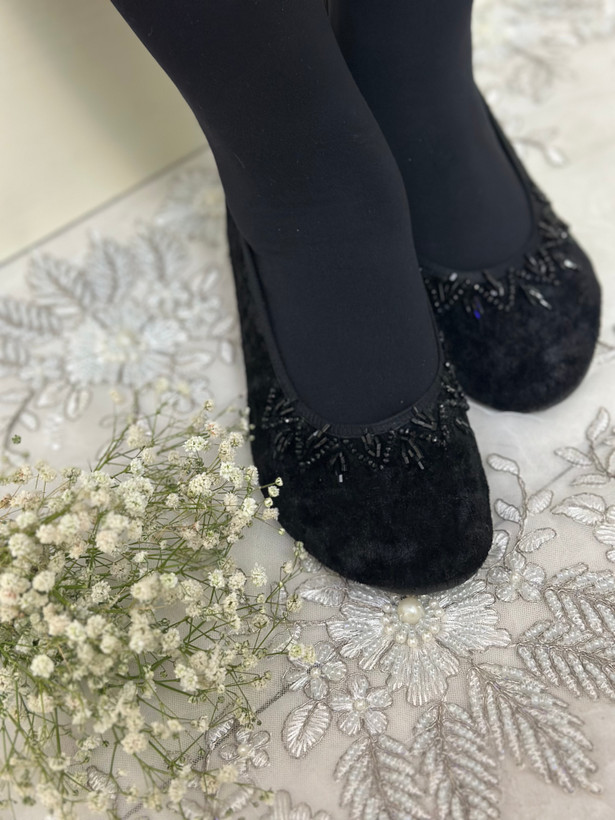 👑 اگر دنبال #ظرافت و زیبایی خاص هستید، این پاپوشهای مخمل با جواهر دوزی کار دست بهترین انتخاب شماست!